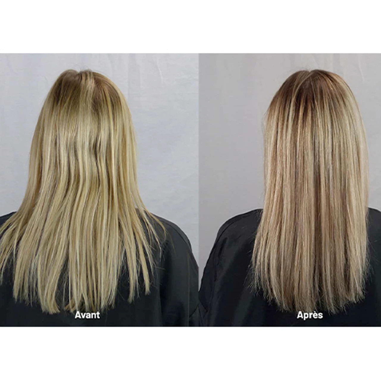 Ce soin correcteur sans rinçage s’utilise en complément d’une routine shampooing + soin repigmentant, entre 2 soins.
